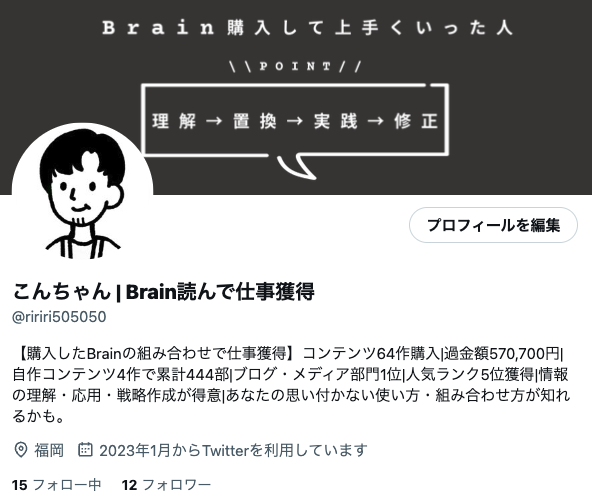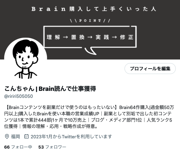 それは、誘導している人たちの多くは最終オリジナルコンテンツを持っている人たちで、Brainアフィリ用のクッションページを持ってTwitter運用している人が少なかったためです。