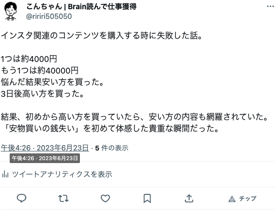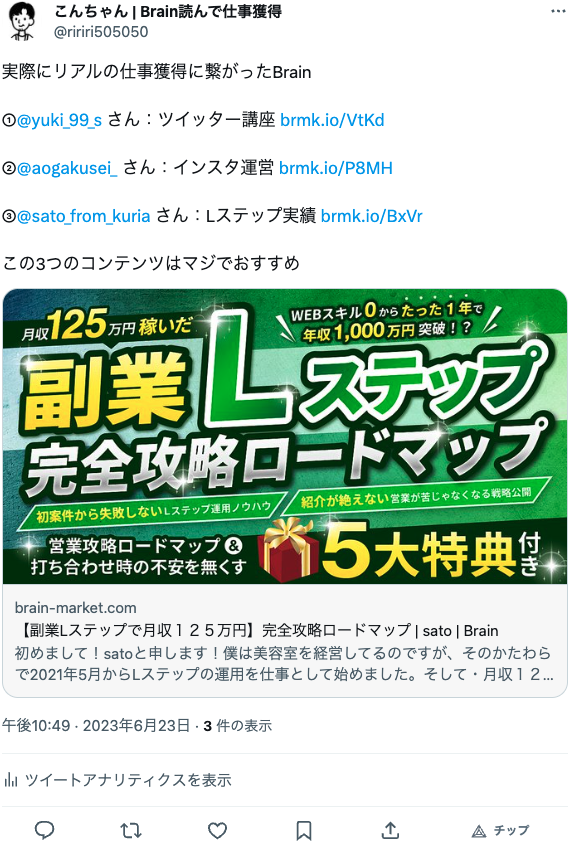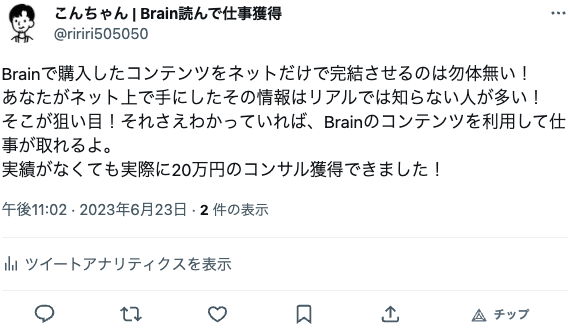 ツイート内容が拡散されないとぶっちゃけBrainアフィリエイトで稼ぐことは難しい
